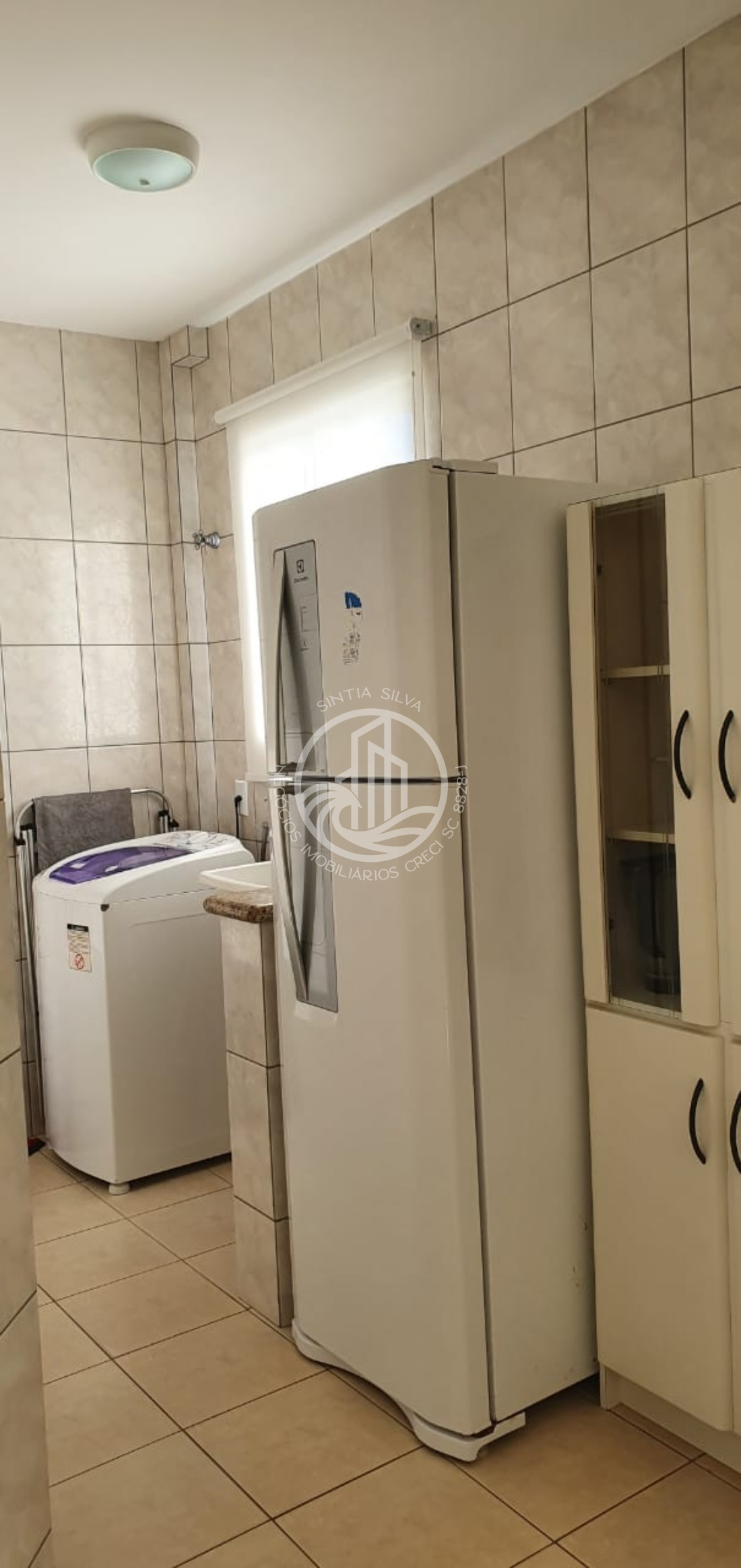 Área de serviço com máquina de lavar roupas