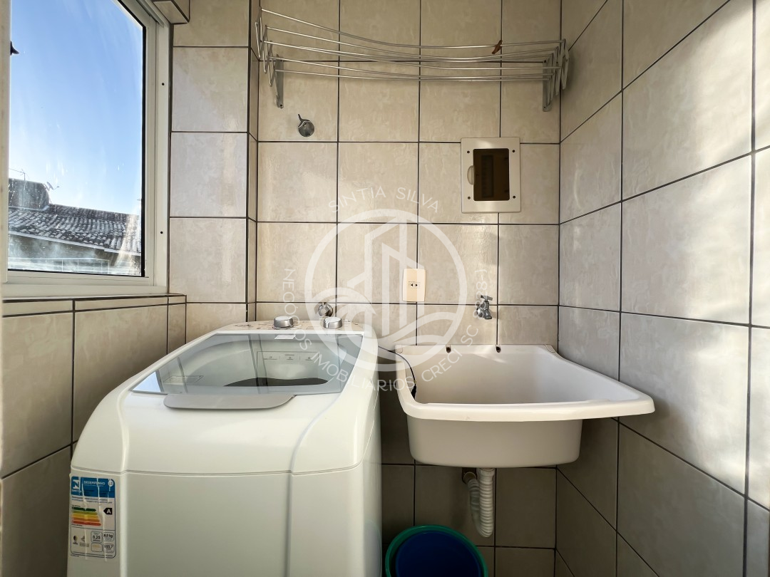 Área de serviço com máquina de lavar roupas