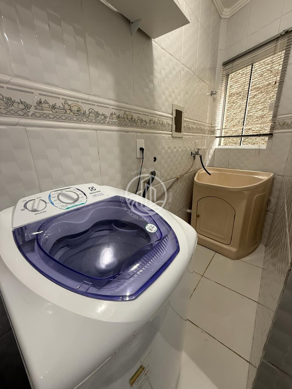 Área de serviço com máquina de lavar roupas